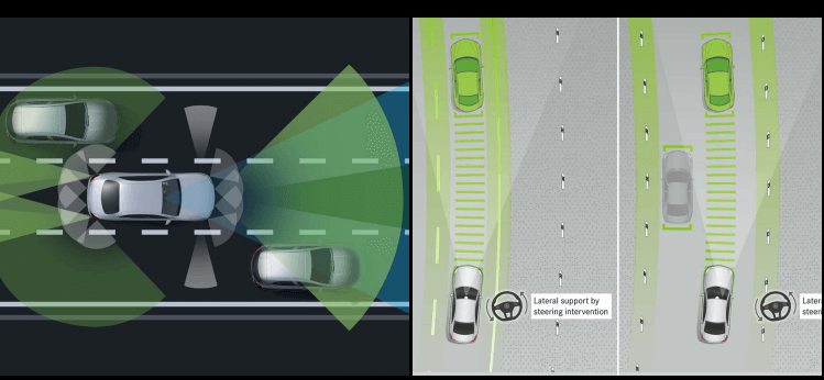 앞차와의 간격을 유지하며 자동으로 속도를 조절하고 제동·출발을 지원하는 '액티브 디스턴스 어시스트 디스트로닉' 기능의 경우 도로 위에 정지된 차량에 반응할 수 있는 속도 상한선을 기존 시속 60km에서 100km로 개선했습니다.
