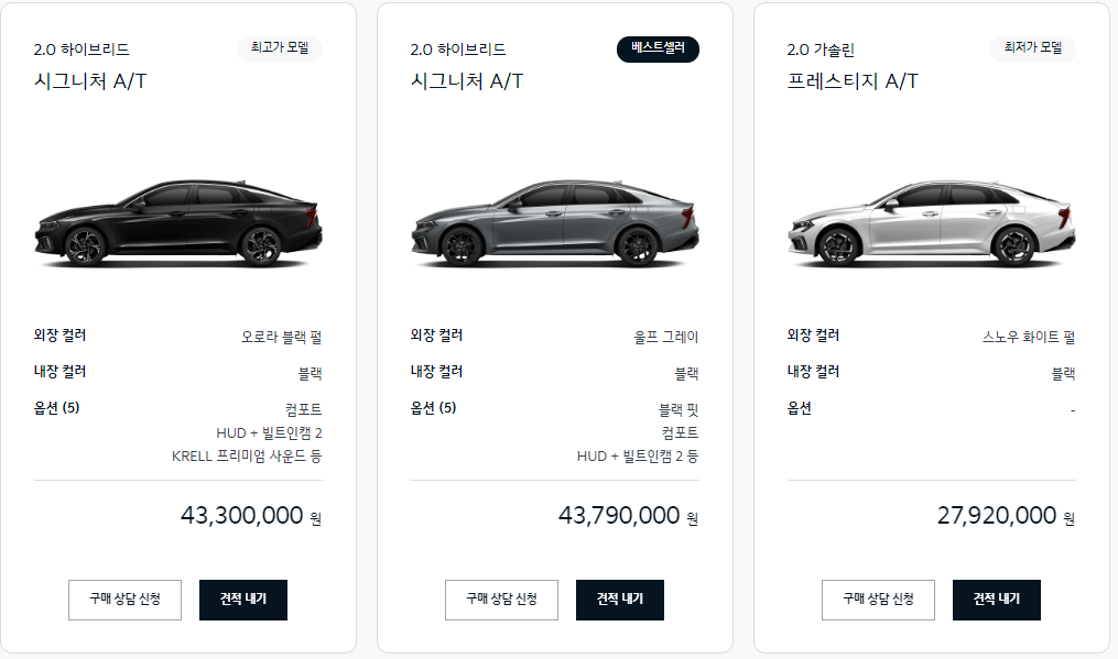 2024 K5 하이브리드 모의견적