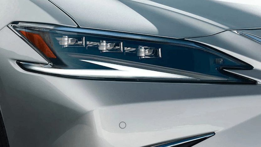 프론트 페시아부터 시작되는 ES300h는 렉서스 특유의 스핀들 그릴을 자연스럽게 내세웁니다. 이 시그니처 디자인 요소는 복잡한 메쉬 패턴과 대담하고 각진 라인으로 역동적이고 공격적인 외관을 연출합니다.